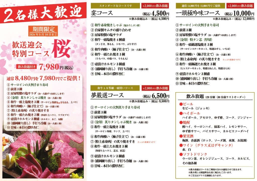 上野店限定のコースをご用意。 年末年始もリーズナブルにご満足頂ける内容となっております。
