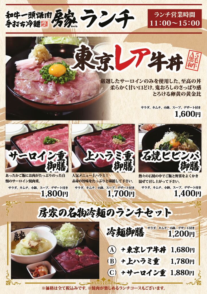 房家ホルモン館 上野六丁目1号店ランチメニュー